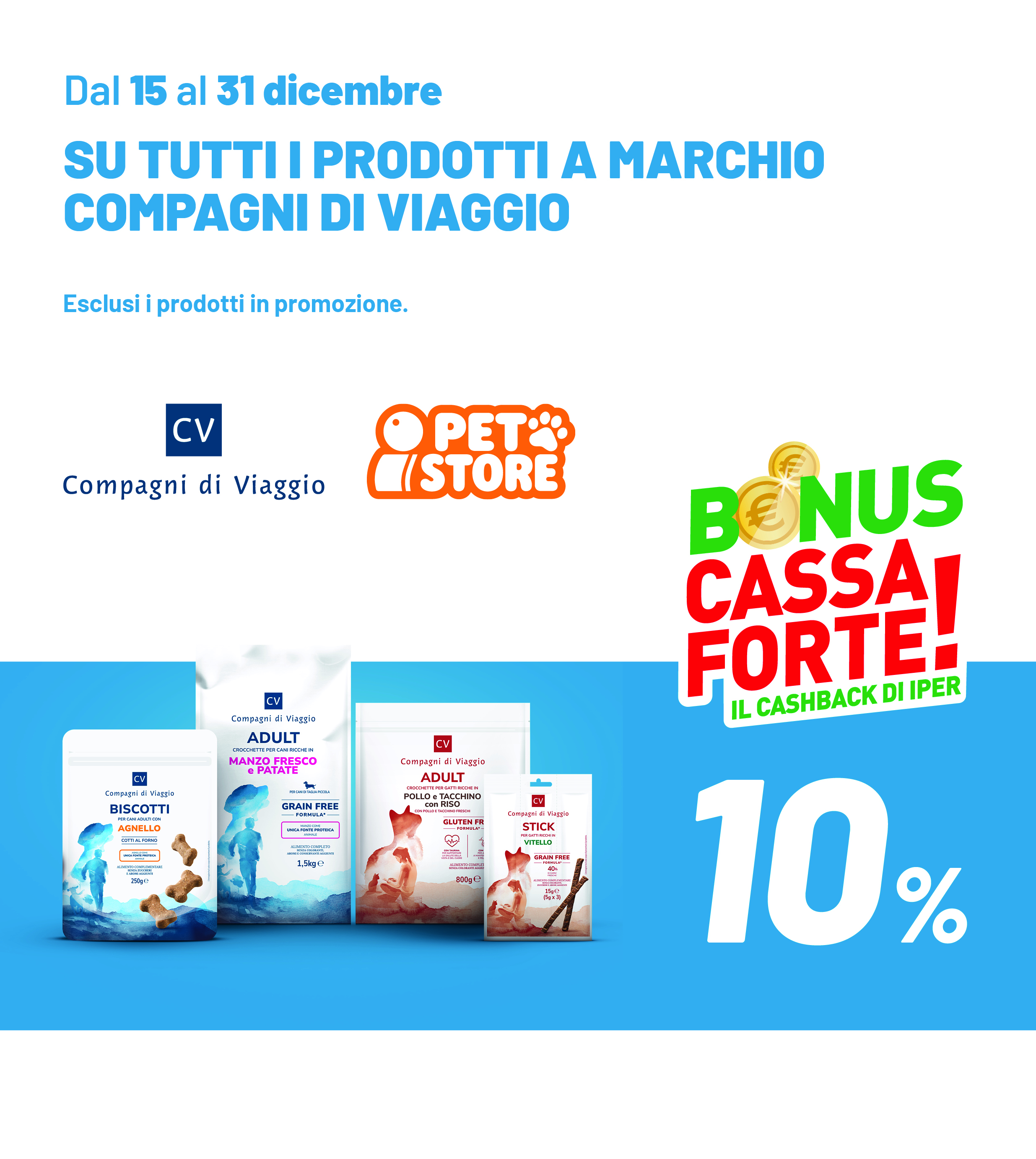 Il Bonus CassaForte è utilizzabile **immediatamente **su acquisti relativi all’intero assortimento Iper La grande i, ad esclusione di: giornali, riviste, libri di testo, Iperfarma, Unieuro by Iper La grande i, beni e servizi Iper+, lotterie, gift card Iper La grande i, abbonamenti, ricariche tv e telefoniche, auto, carburanti e contributi per operazioni a premio.