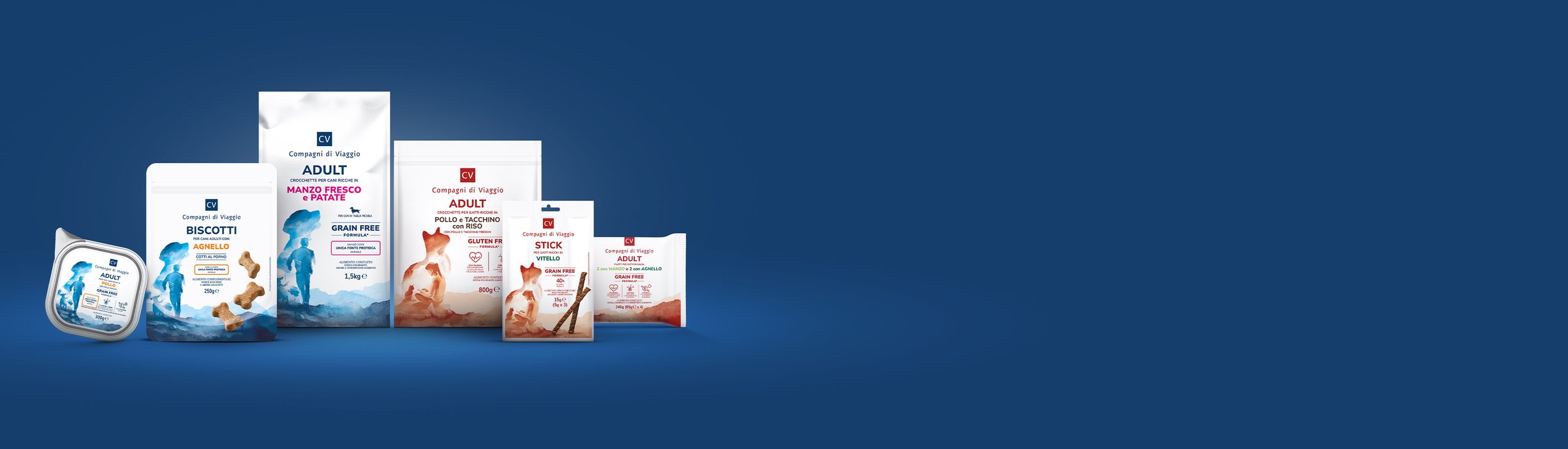 Una gamma completa, adatta a gusti, taglie ed esigenze particolari con formulazioni grain free e gluten free.