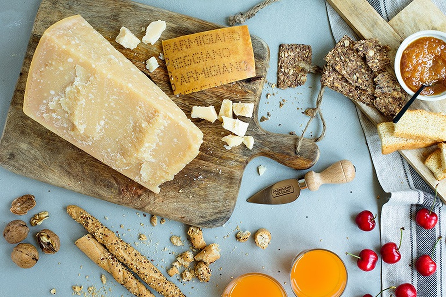 Le sue proprietà sono molteplici e tutte legate alle qualità intrinseche del prodotto: digeribile, ricco in calcio, fonte di fosforo, privo di additivi e conservanti, connotato da piacevolezza e gradimento organolettico. Per queste caratteristiche, il Parmigiano Reggiano è un alimento fondamentale nella dieta di tutti, dai piccoli agli anziani, passando per gli sportivi che trovano nel Parmigiano Reggiano una carica di energia totalmente naturale. Grazie al suo processo produttivo, il Re dei formaggi è anche naturalmente privo di lattosio già dopo 48 ore dalla nascita, dal momento che tutto lo zucchero (lattosio) viene trasformato in acido lattico a opera dei batteri lattici. Le lunghe stagionature (40 mesi) sono inoltre fonte di selenio e cromo. Il selenio è un micronutriente che contribuisce alla normale funzione del sistema immunitario, alla protezione delle cellule dallo stress ossidativo, alla normale funzione tiroidea e al mantenimento di unghie e capelli normali. Il cromo contribuisce al normale metabolismo dei macronutrienti e al mantenimento dei normali livelli di glucosio nel sangue.