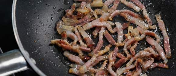 Tagliare il guanciale a listarelle e rosolarlo in padella. Una volta rosolato scolarne la metà su carta assorbente per la decorazione del piatto