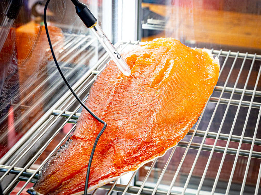 Il Pesciugatore® è l'attrezzatura che consente la maturazione del pesce a temperatura e umidità controllata. Solo dopo essere stato sottoposto a speziatura e aromatizzazione e dopo un riposo di 7 giorni nel Pesciugatore®, il nostro Salmone Iper è pronto per essere gustato e messo in vendita a lingotti, fette o dadini.