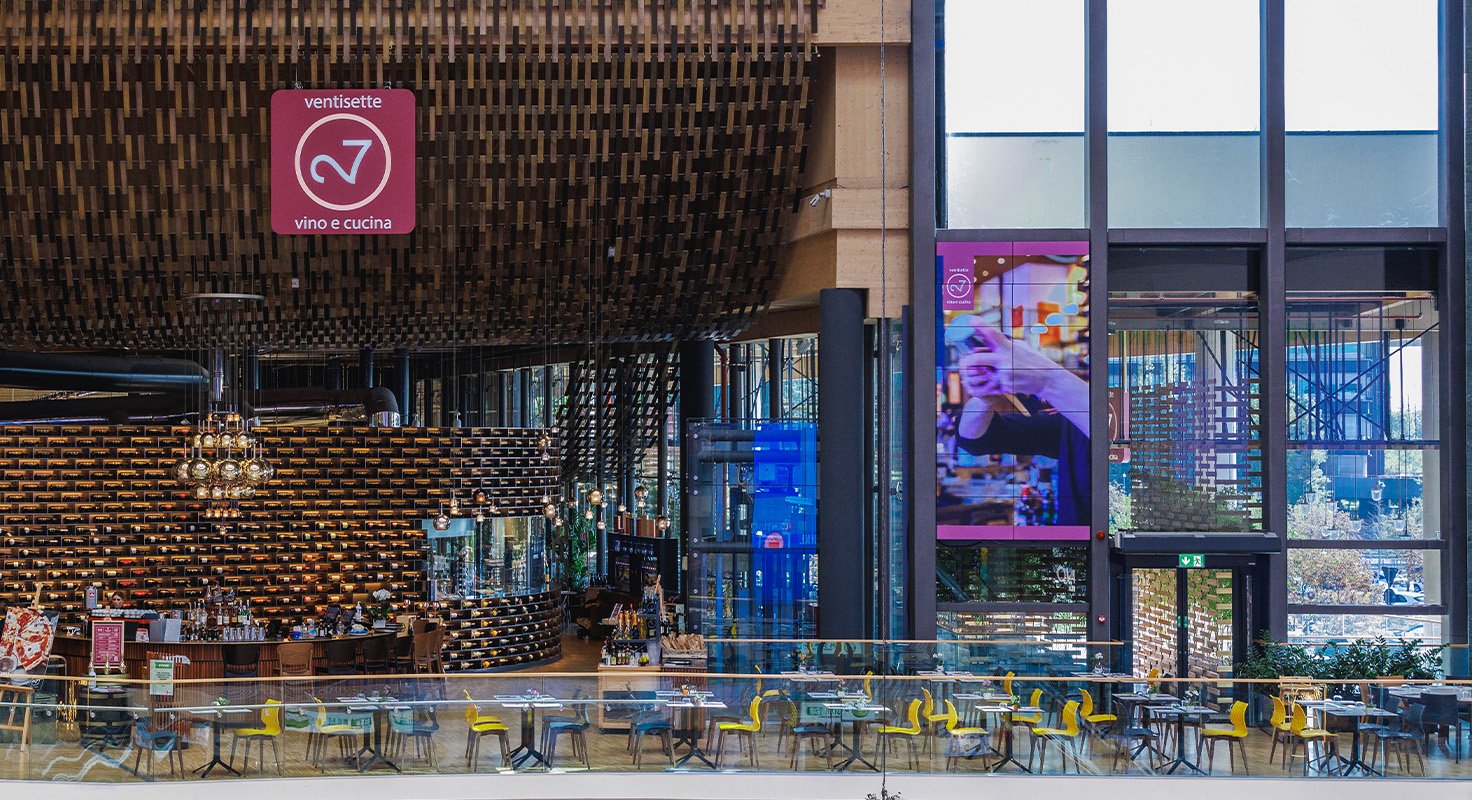 Basta uno sguardo alla Carta dei Vini per capire che è il fiore all’occhiello di Ventisette: la scelta è tra oltre 120 etichette in vendita al ristorante, allo stesso prezzo della Cantina dei punti vendita Iper la grande i, e acquistabili rivolgendosi direttamente al sommelier, il modo migliore per riassaporare il vino che ha reso speciale la tua esperienza da Ventisette.